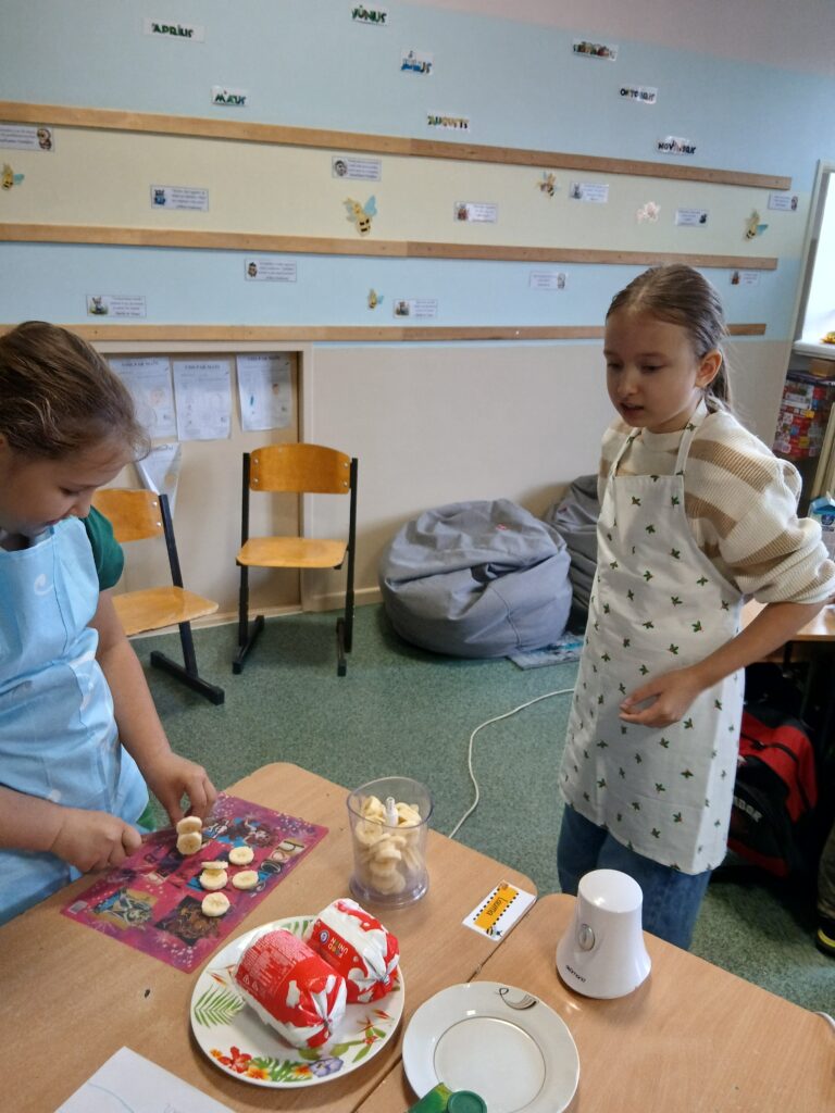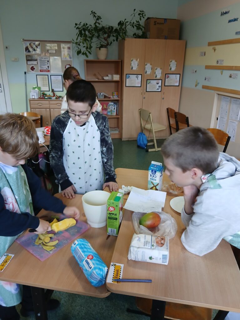 Ak šīs darbietilpīgās un garšīgās dizaina un tehnoloģijas stundas. Tēmas: Kā dārzeņus un augļus šķiro, mizo, skalo un smalcina, lai pagatavotu salātus, uzkodas un dzērienus. Šīs tēmas ietvaros 3.a klases skolēni gatavoja saldos kokteiļus.