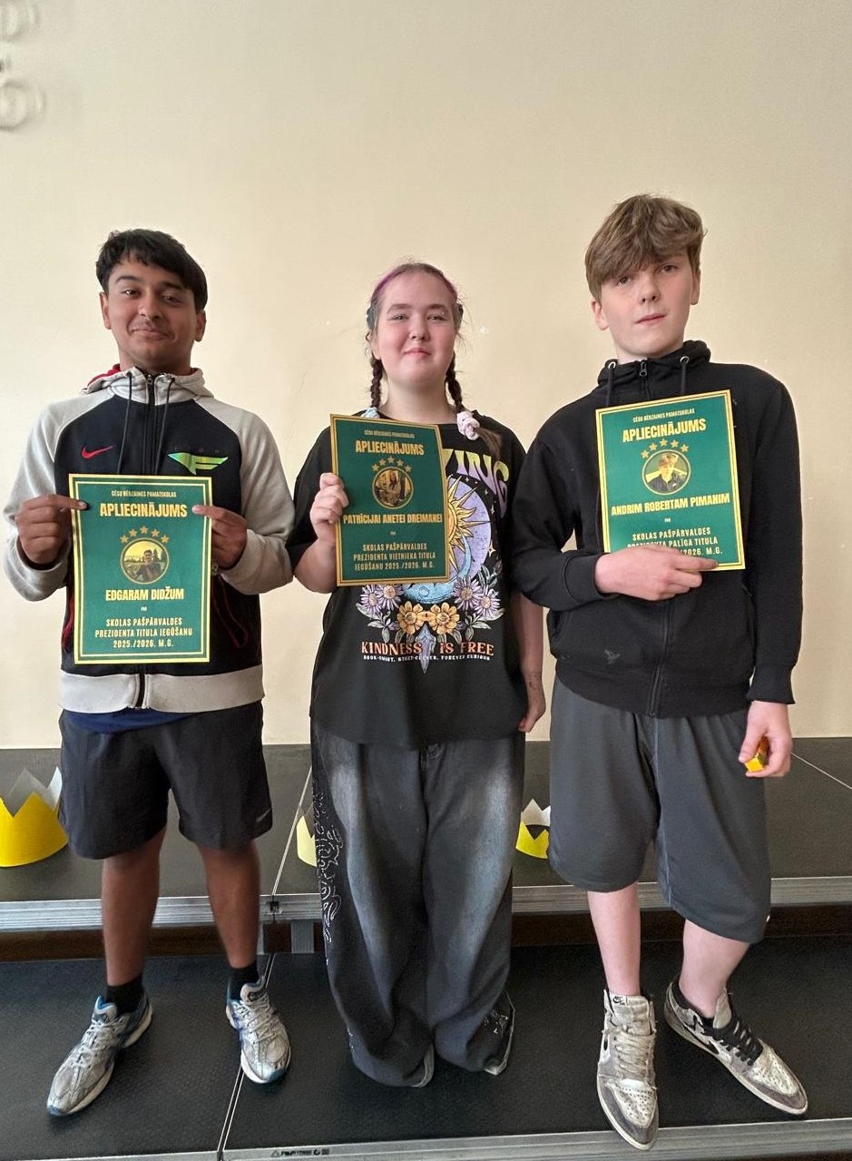 Uzsākoties jaunajam 2025./2026. mācību gadam, tika izveidota jauna skolēnu pašpārvaldes komanda – katrai komandai ir nepieciešams savs līderis, līdz ar to skolēnu pašpārvalde organizēja “Skolēnu pašpārvaldes prezidenta vēlēšanas 2025”, kurās skolēnu pašpārvaldes prezidenta titulu ieguva Edgars Didžus. Pašpārvaldes prezidenta vietniece – Patrīcija Anete Dreimane un Pašpārvaldes prezidenta palīgs – Andris Roberts Pimanis. Apsveicam un vēlam aktīvu un radošu darbošanos iesaistoties skolas dzīvē!