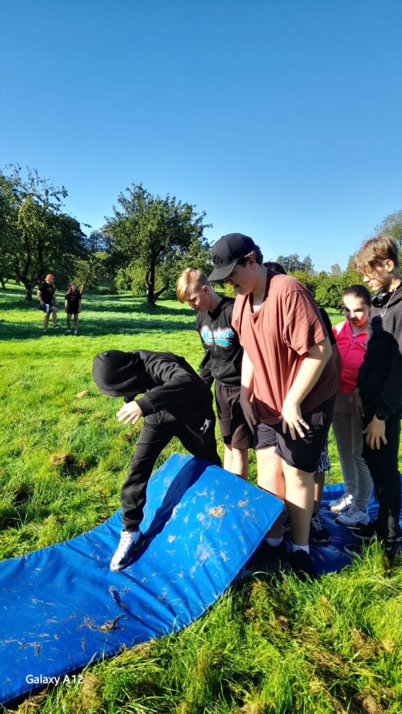 Pateicoties mūsu lieliskajiem sporta skolotājiem Arnitai Motei, Annijai Motei un Mārim Bogdanovam skolas teritorijā valdīja liela rosība, prieks un jautrība. Šodien norisinājās Rudens sporta diena. Katras klases komandas gars bija jūtams ik uz soļa. Lai arī galvenais sacensību uzdevums bija sadarboties un saliedēties ar jaunajiem klases biedriem, visas komandas saņēma atzinības rakstu “Par aktīvu līdzdalību skolas sporta dienā”! Pateicamies visiem atraktīvajiem skolotājiem, kuri ieņēma sporta staciju vadītāju lomu. Paldies pavārēm Janai, Ivetai, Hedvigai un Mārītei par garšīgo pārsteigumu skolas pagalmā. Pēc aktīvas sportošanas pusdienošana brīvā dabā, labāko draugu pulciņā ir neaizmirstams mirklis. Ļoti saliedējoši!